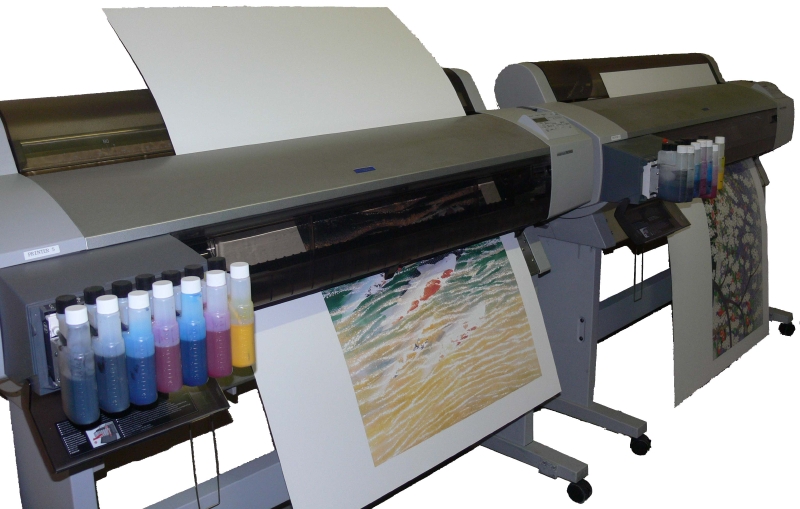 デジタルプリントを始めた当初、知人の依頼で故*Gary Phenoの開発した100%顔料インクの試作にかかりました。独自の研磨技術で作られる顔料インクは見事なまでの発色と耐候性を持ち合わせていましたが、プリンターヘッドのインクの詰まりが続き触媒の改良を何度か重ね完璧なインクとなりました。